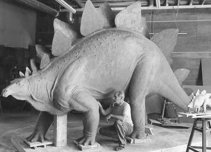 Mr. Jonas in his studio putting the final touches on the clay model of Stegosaurus. The sculpted form was then ready for molding and fabrication.